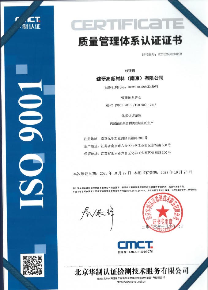 ISO9001质量管理体系认证证书