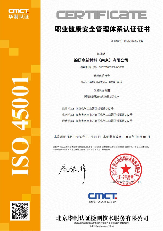 ISO45001环境管理体系认证证书-职业健康